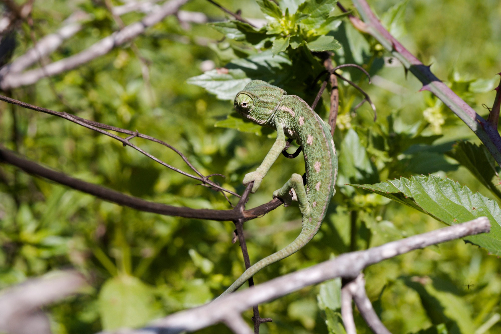 La única especie de camaleón (Chamaeleo chamaeleon) autóctona del norte de África y único representante de su familia en Europa, especialmente en el sur de España, donde fue introducido por la actividad humana.