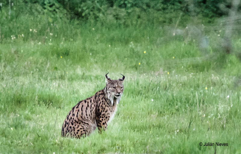 Tuvimos la gran suerte en nuestra visita al P. N. de Doñana a poco de terminar la ruta y visita al parque ver el Lince Ibérico y como decían los guías es rarisimo que se deje ver, la imagen es de lo mejor que he podido conseguir dentro de las adversidades, hora de la luz, distancia a la que se encontraba el lince de unos 200 mts, su paso efímero siendo solo varios segundos, un montón de gente buscando hueco para intentar hacer la fotografía dentro del vehículo, los datos exit Nikon D3S - Nikon 80-400 - F 5.6 - 1/1600 - ISO 16000, y recorte de la imagen final más o menos por mitad