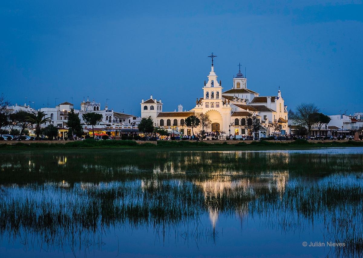 Imagen de la aldea del Rocío en la hora azul.
