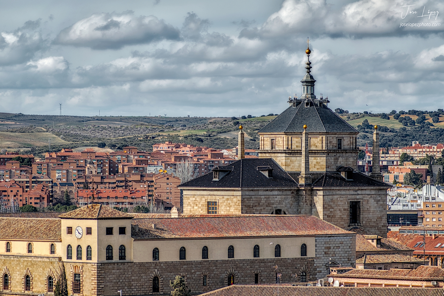 Atardece en Toledo. Esta vista me cautiva siempre que visito Toledo, quizás no sea una de las más vistas, pero creo que, por la geometría y las líneas del Hospital de Tavera es una de las más bonitas.