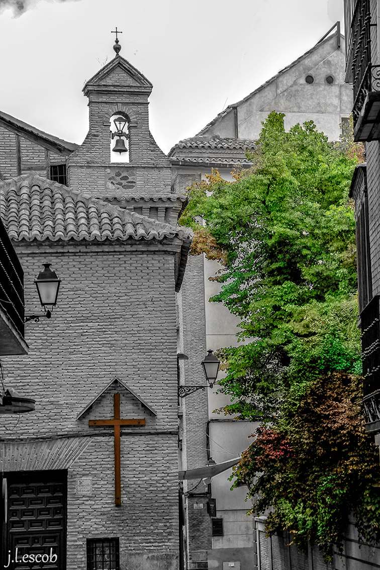 Yo sí que veo que has querido resaltar obviamente la cruz con su tono madera y el árbol con sus tonos también marrones y verdes, y ello en contraste con la piedra que has dejado en blanco y negro.