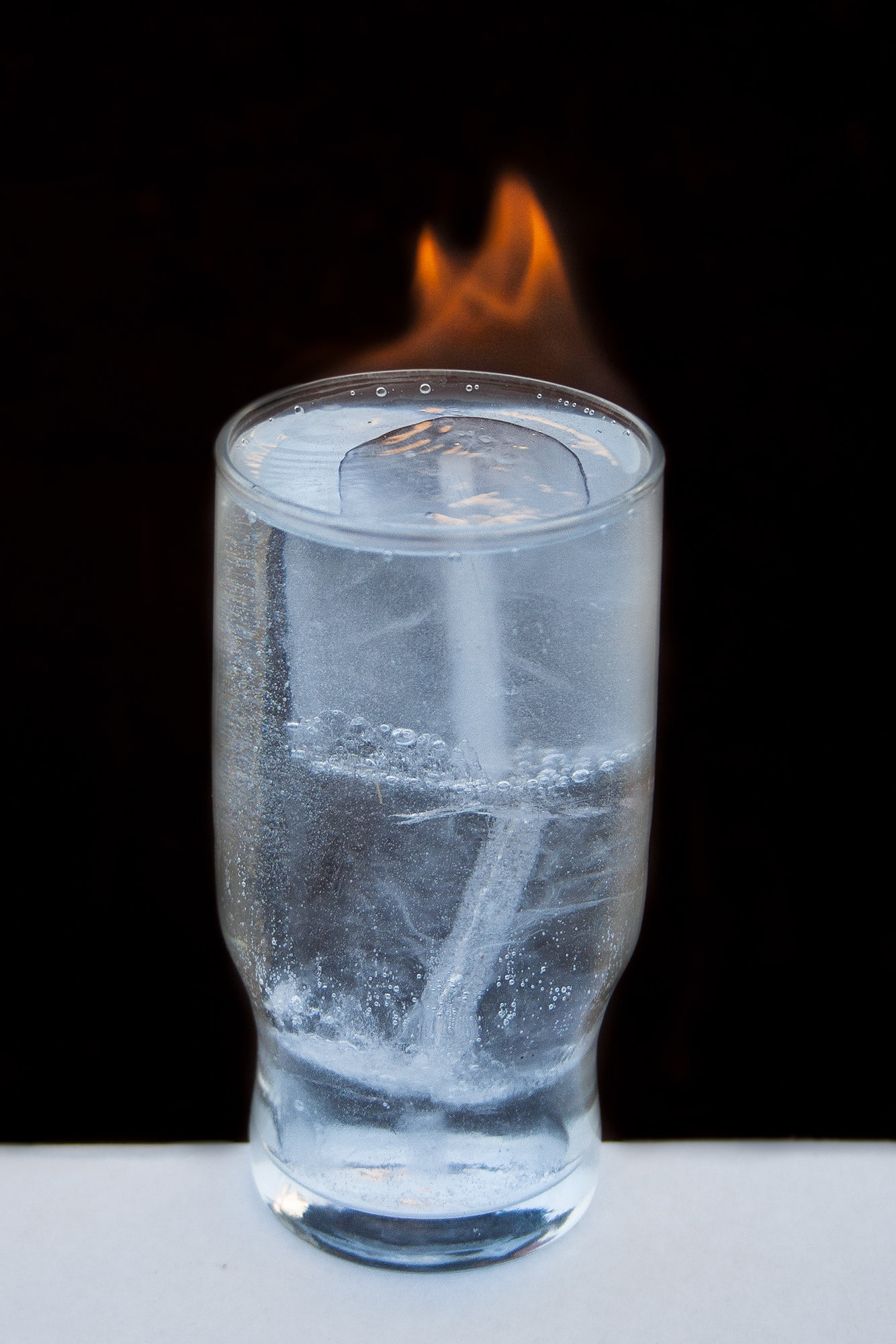Buen intento pero una foto muy difícil de ejecutar. Creo que tiene mucha presencia el hielo y poco el fuego. El uso de una apertura grande hace que estén mucho partes desenfocadas.