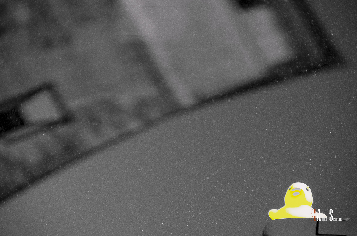 Me gustó el aspecto de foto tomada con película. Las "motas" son de la foto: se trata de una foto a un reflejo sobre la luna trasera de un utilitario aparcado en (creo) la plaza de S Vicente.