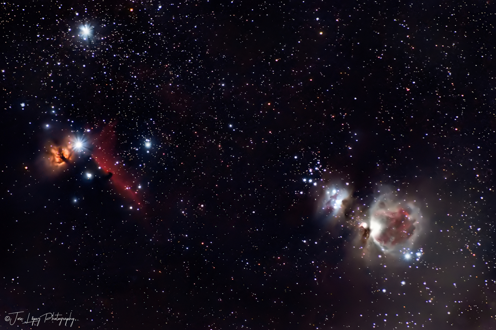 Una noche de invierno, el frío, el aire, y los imprevistos tecnológicos, no impidieron que pudiera capturar esta imagen de tres de las nebulosas más fotografiadas actualmente.110 tomas, ligths, darks, flats y bias. Procesado con Siril, Denoise con Neat Image y revelado con Darktable y Gimp, con máscaras de capa y luminosidad.