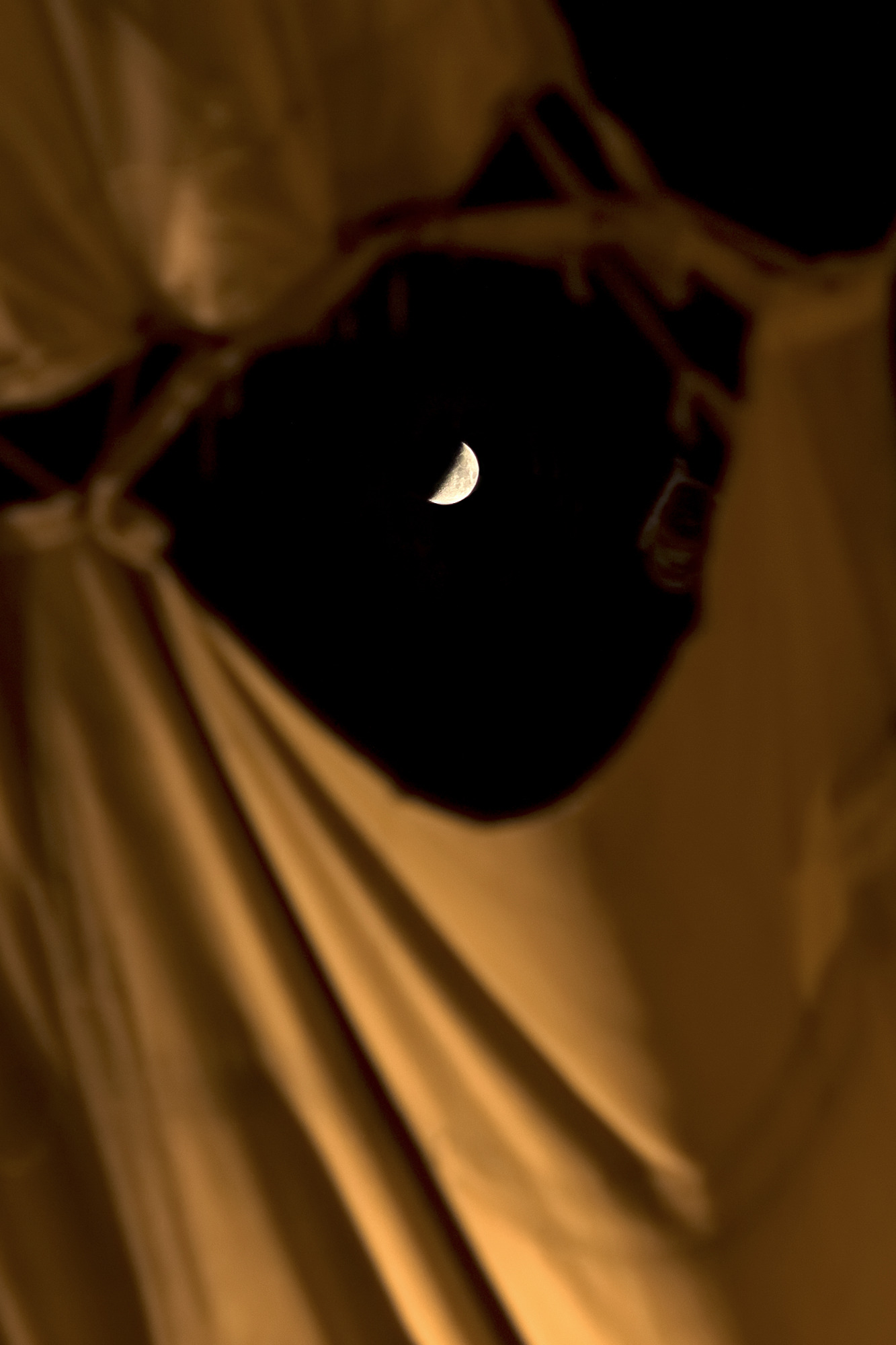 Al salir de la reunión del viernes y mirar los toldos, ahí andaba la luna posando, así que hubo que fotografiarla:
