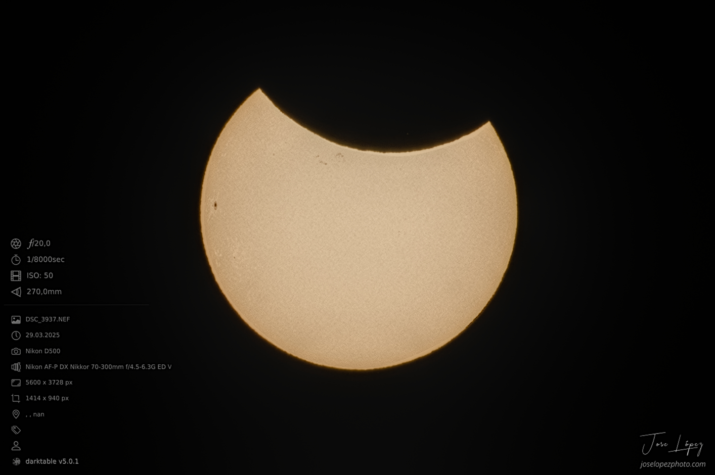 Del eclipse parcial del día 29. Los datos de captura en la imagen. La dejo en esta categoría por ser de la luna y el sol. Espero que os guste.