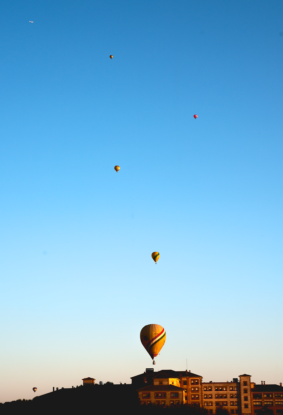Ésta no tenía más curiosidad que la línea que marcan el avión de la esquina superior izquierda y los globos que van aumentando de tamaño a media que bajan, pero aquí está