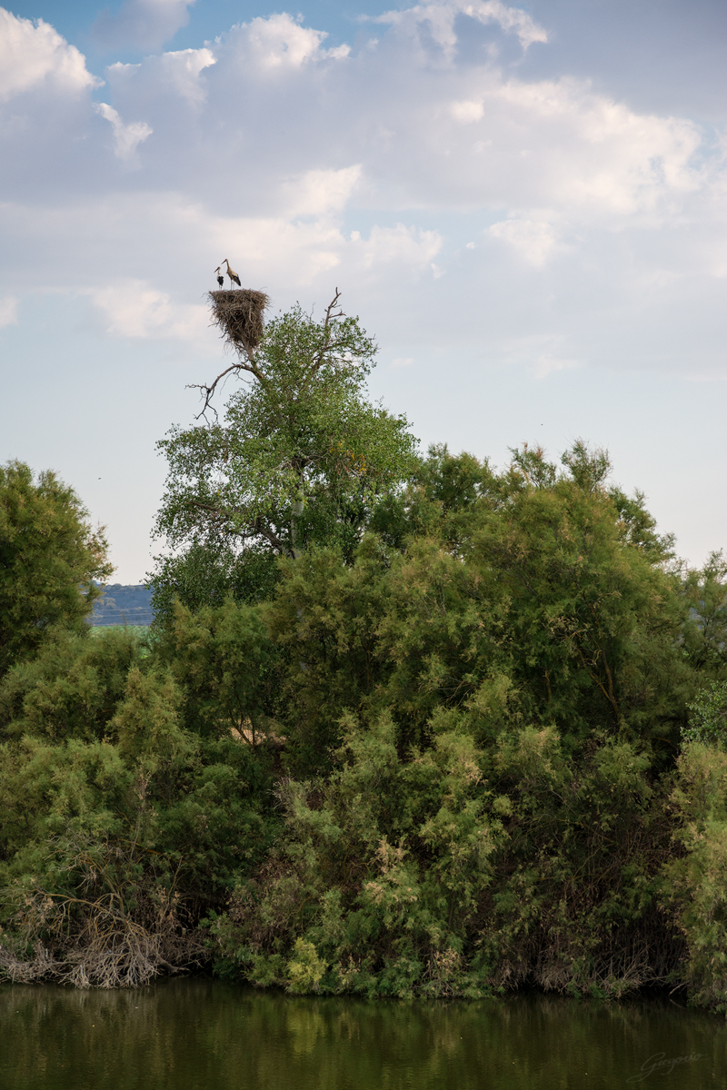 Un par de cigüeñas desde su nido-atalaya.