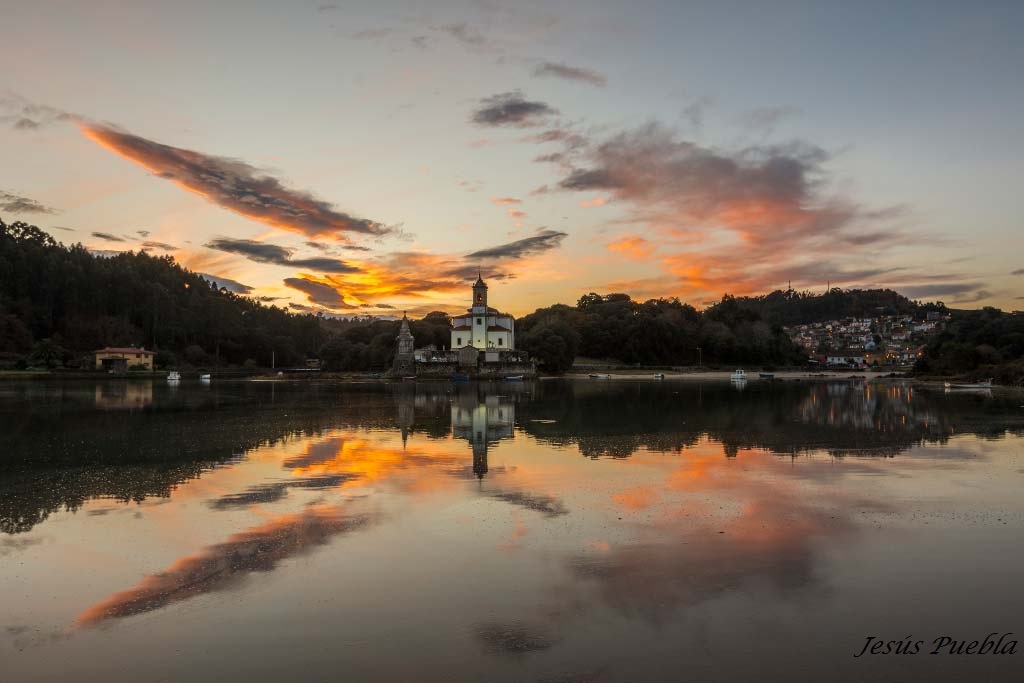 Para fotografiar el reflejo al atardecer hay que consultar la tabla de mareas para ver cuando coincide la marea alta con el crepúsculo. Y luego rezar para que el atardecer sea interesante