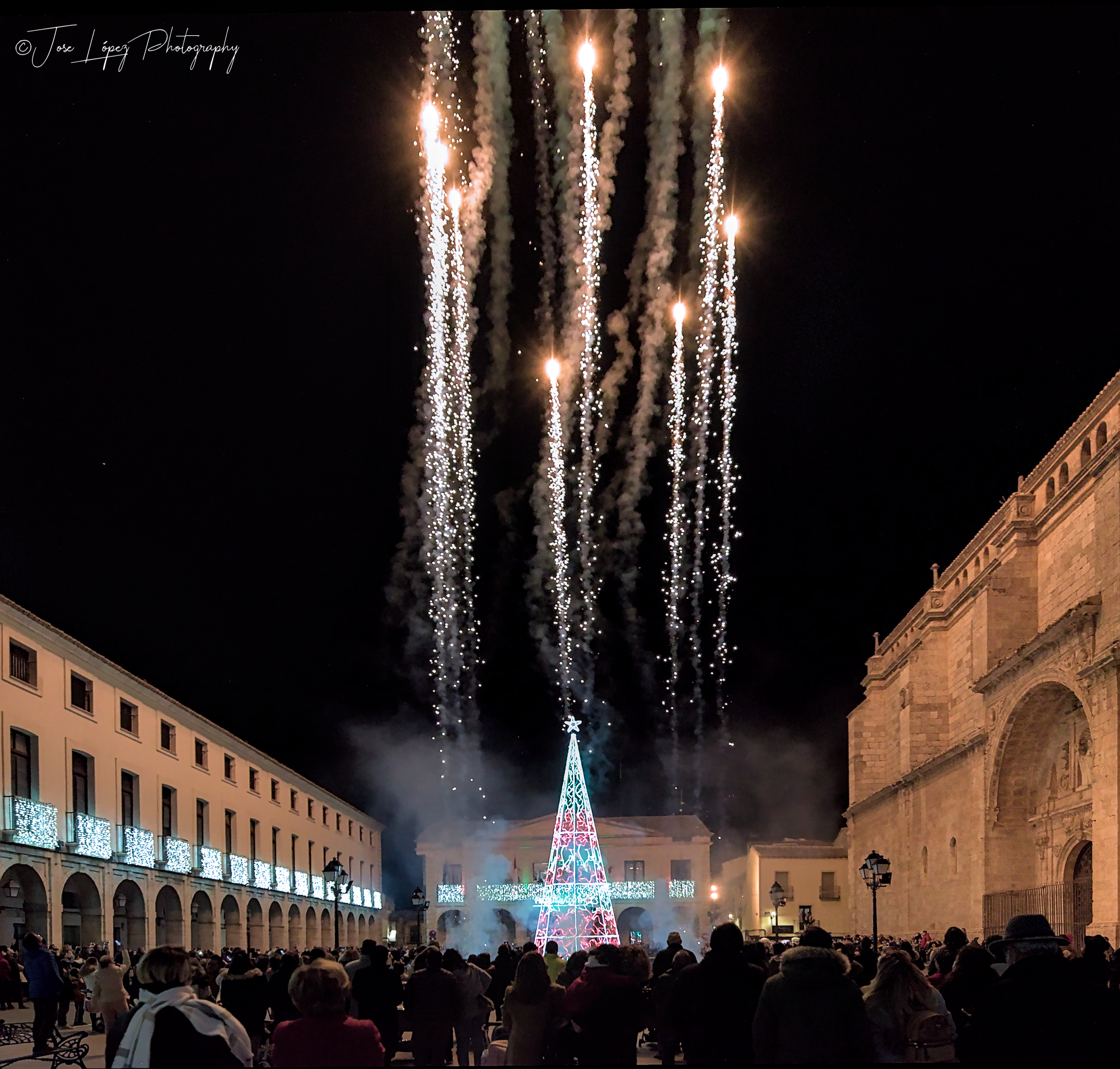 Ya se enciende el arbol, y los fuegos dorados anuncian la Navidad.