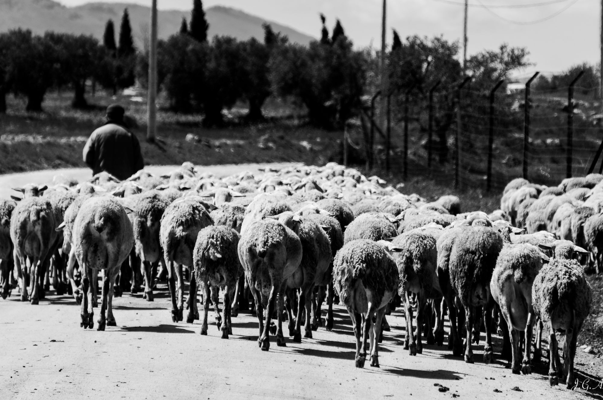 Se me ocurre sugerirte que estos efectos los intentes conseguir en la propia toma fotográfica, y la edición la dejes sólo para pequeños y sutiles retoques para que no destaque excesivamente. De forma natural no es posible encontrarse una escena tan perfectamente recortada por la viñetas como la que planteas (sombras en el primero y último planos, incluso en el cielo), pero sí lo sería aprovechar el paso del rebaño y esperarlo por algún lugar que descubras donde la luz se recorte por los árboles o por cualquier otro elemento, de esa forma el resultado visual ganaría mucho y sería una fotografía mucho más natural, limpia y directa.