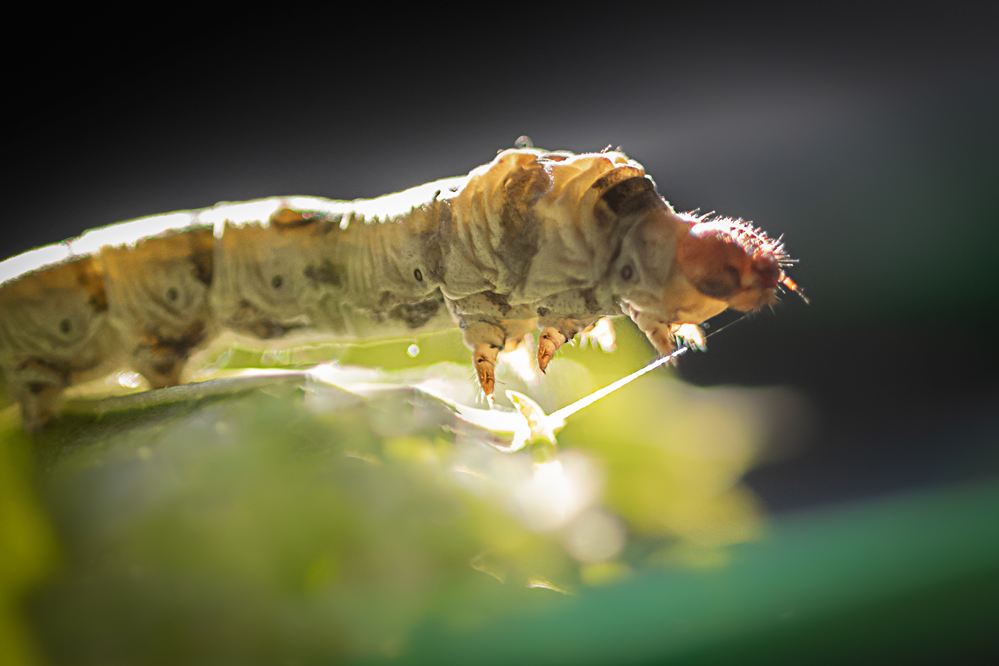 Un pequeño gusano de seda trabajando...en lo que sea que esté haciendo