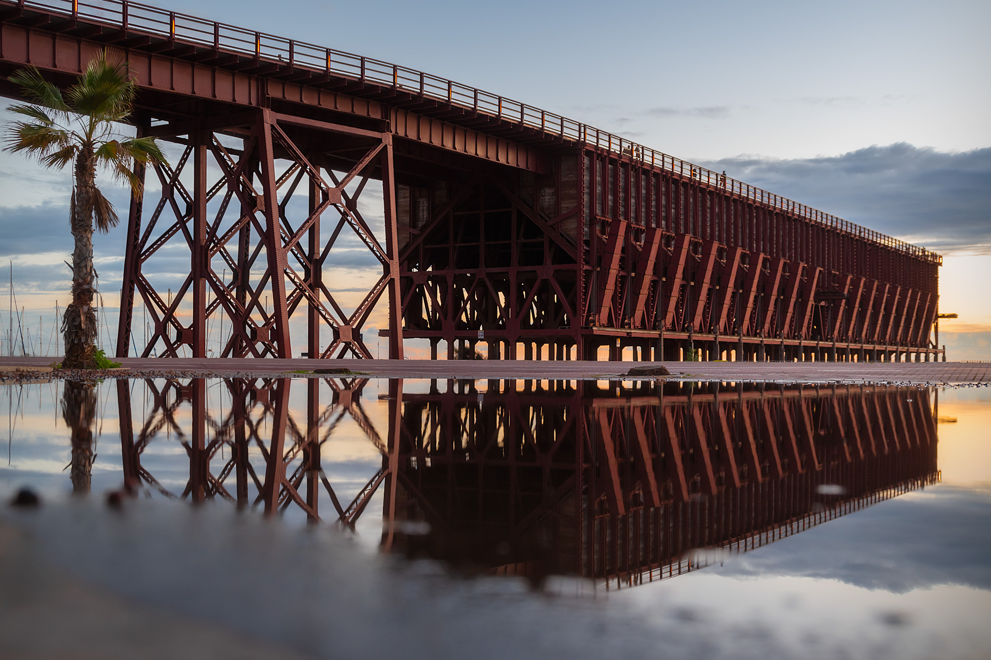 No es fácil ver charcos en Almería, pero el temporal de este fin de semana me regaló uno bien grande para tirarme por el suelo y sacar el cable y su reflejo