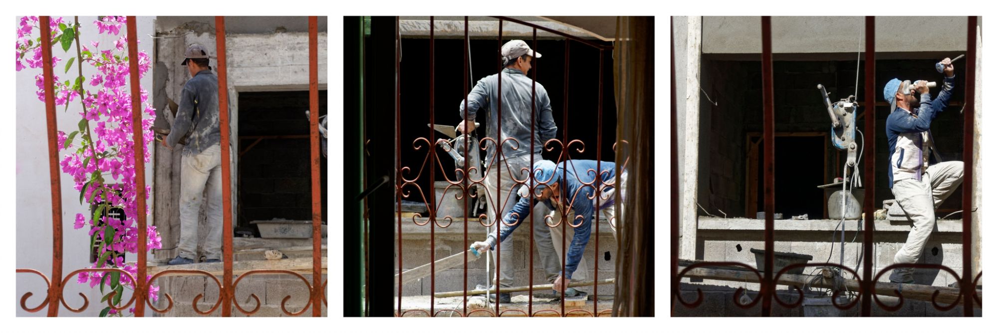 Aquí, la obra en construcción frente a mi piso. He tomado una foto a través de la ventana de cada habitación y he montado ese tríptico.