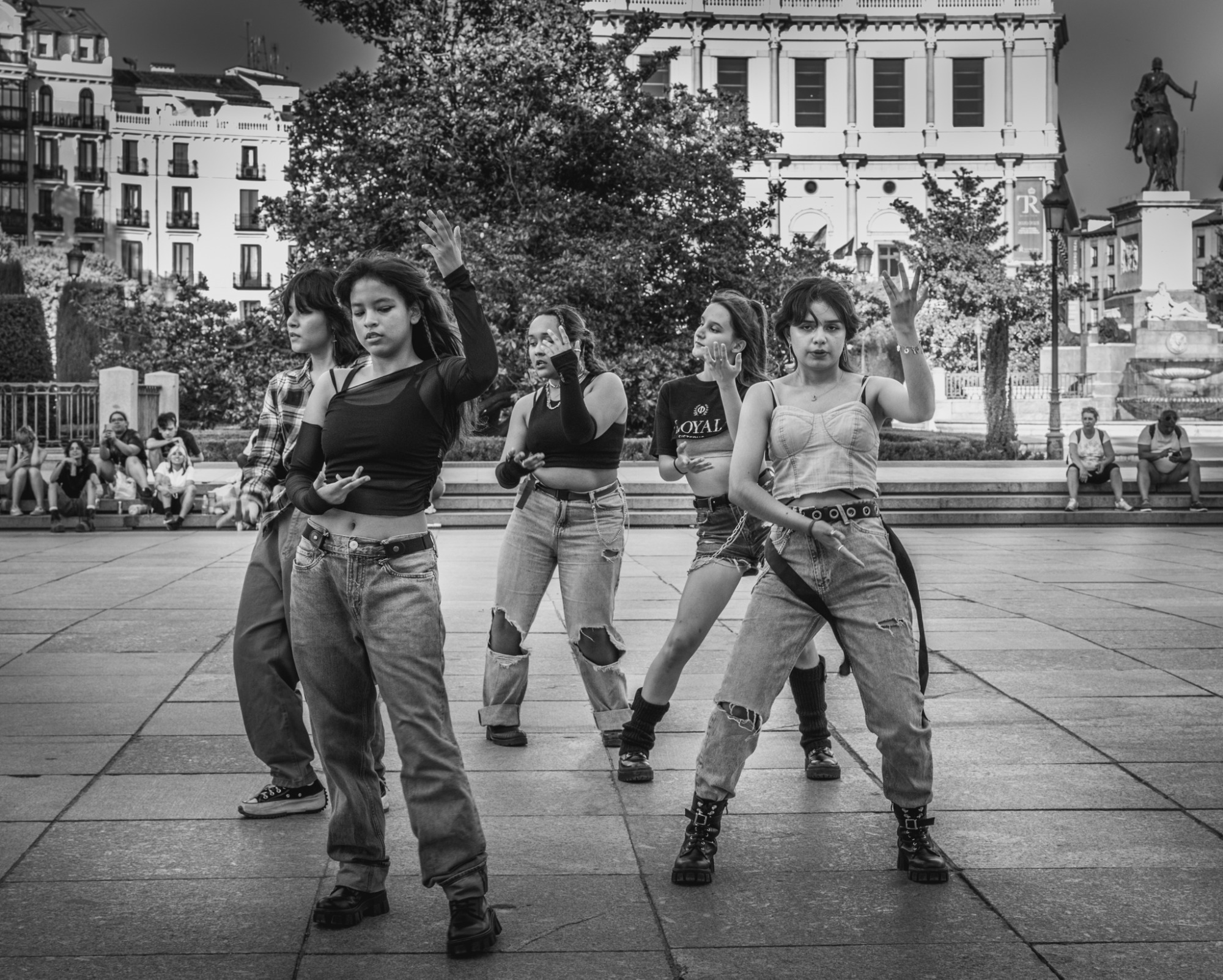 Un buen testimonio de nuestra época, pero la foto me parece carente de profundidad, probablemente debido al tratamiento del cielo y de los edificios del fondo, que no me parece muy adecuado.
