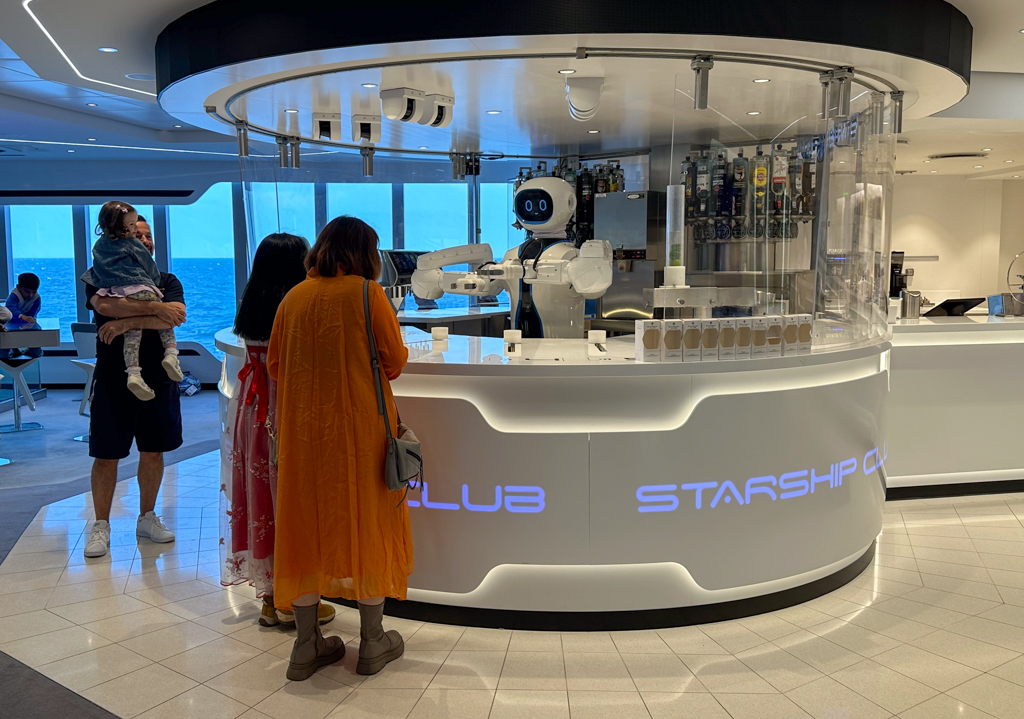 Es una imagen captada con el Iphone 14 Pro Max, en un pasillo del buque Virtuosa en la zona de ocio, bares y tiendas, es un realidad como la vida misma, incluso tenian un robot sirviendo cocteles, lo vemos en las peliculas futuristas y no nos lo creemos, pero lo cierto que cada día que pasa la A.I. la tenemos pisandonos los talones, no me gusta que la A.I. haga la imagen por mi.
