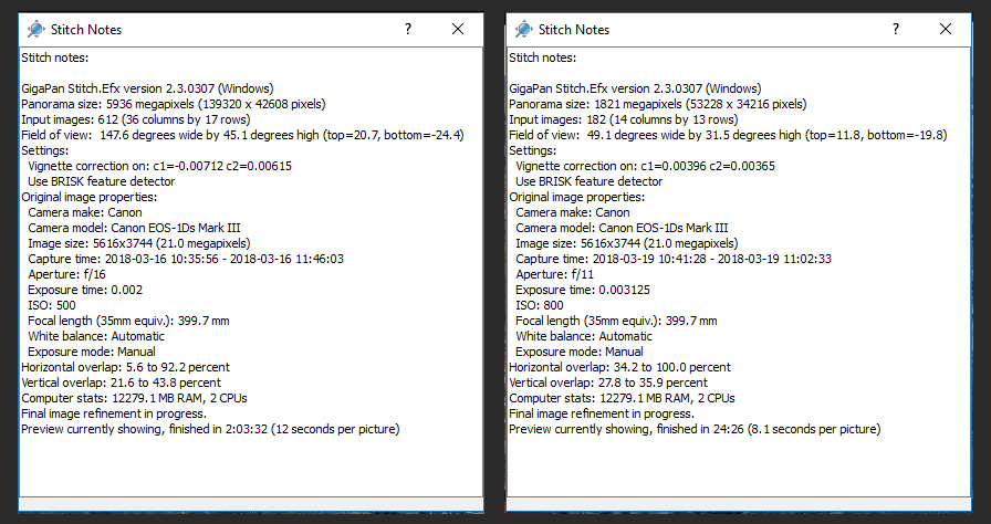 Se formó mediante dos tandas de fotos, la primera de ellas de 612 fotos en 36 columnas y 17 filas, pero que hubo que repetir y complementar con otra porque durante las tomas me llovió bastante y además el andamio se me coló en campo varias veces. Esta segunda tanda se tomó en otro día y fue de 182 fotos en 14 columnas y 13 filas.